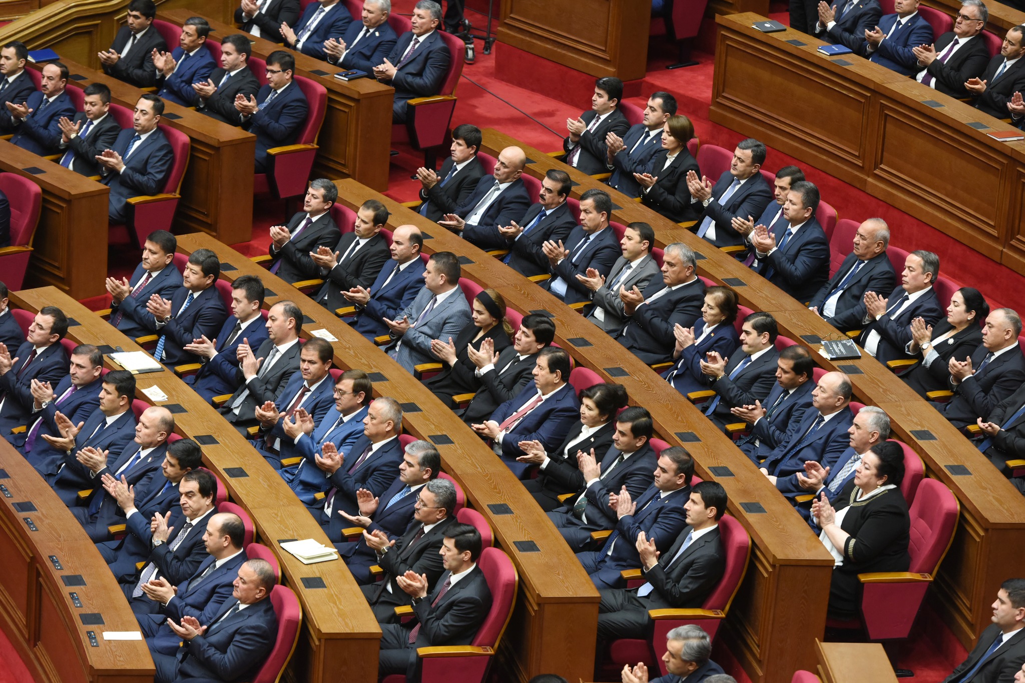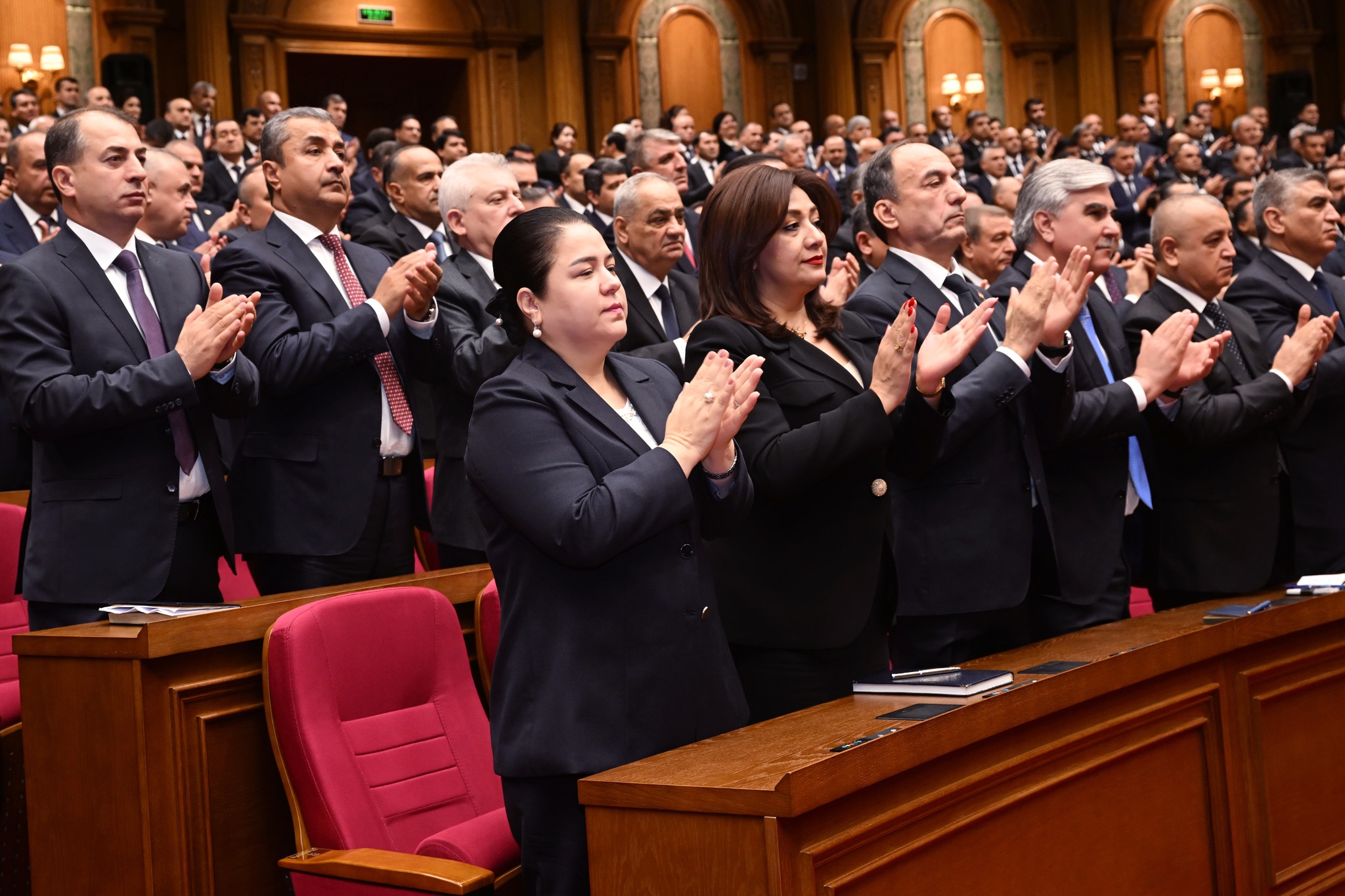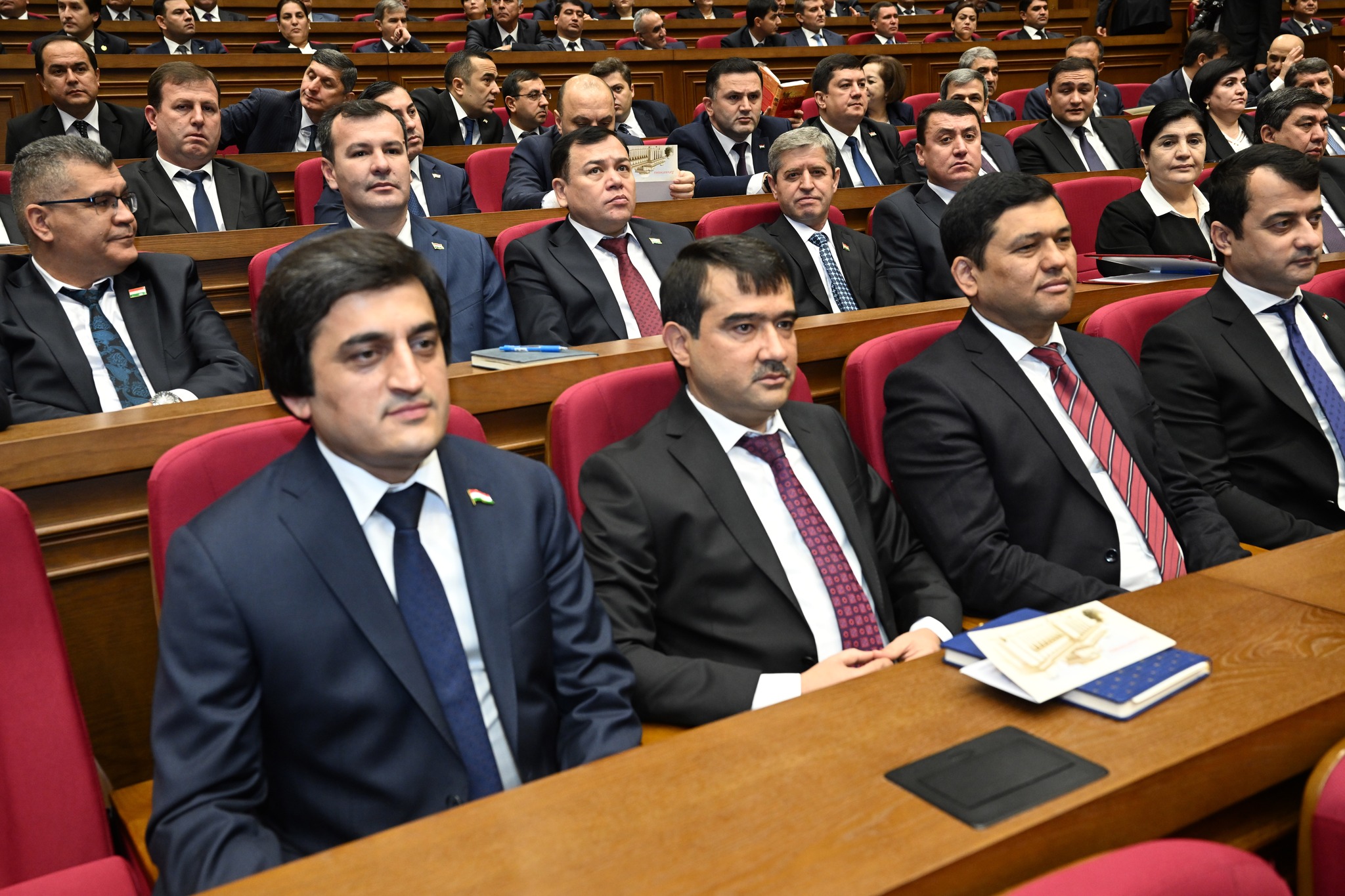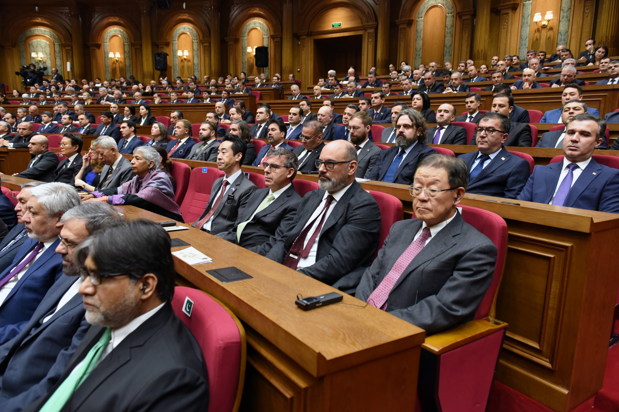 Дар толор раёсати ҳарду маҷлиси Парламент, аъзои Маҷлиси миллӣ ва вакилони Маҷлиси намояндагони Маҷлиси Олии Ҷумҳурии Тоҷикистон, Сарвазир ва аъзои Ҳукумати кишвар, Роҳбари Дастгоҳи иҷроияи Президенти Ҷумҳурии Тоҷикистон, роҳбарияти вазорату кумитаҳои давлатӣ, идораҳои назди Президент ва Ҳукумат, мақомоти марказии судӣ ва дигар ниҳодҳои ҳифзи ҳуқуқу тартибот, Академияи миллии илмҳо, муассисаҳои олии таълимӣ, роҳбарони марказҳои татбиқи лоиҳаҳои сармоягузорӣ, як гуруҳ вакилони Иҷлосияи XVI Шӯрои Олии Ҷумҳурии Тоҷикистон, аъзои Шӯрои ҷамъиятӣ, Ҳаракати Ваҳдати миллӣ ва эҳёи Тоҷикистон, вакилони як қатор иттиҳодияҳои сиёсӣ, ҷамъиятӣ ва эҷодӣ, роҳбарияти корхонаю муассисаҳои ҷумҳуриявӣ, бонкҳо, тоҷирону соҳибкорони фаъол ва ҷавонони ташаббускор, намояндагони ҳайати дипломатӣ ва воситаҳои ахбори умум ҳузур доранд.