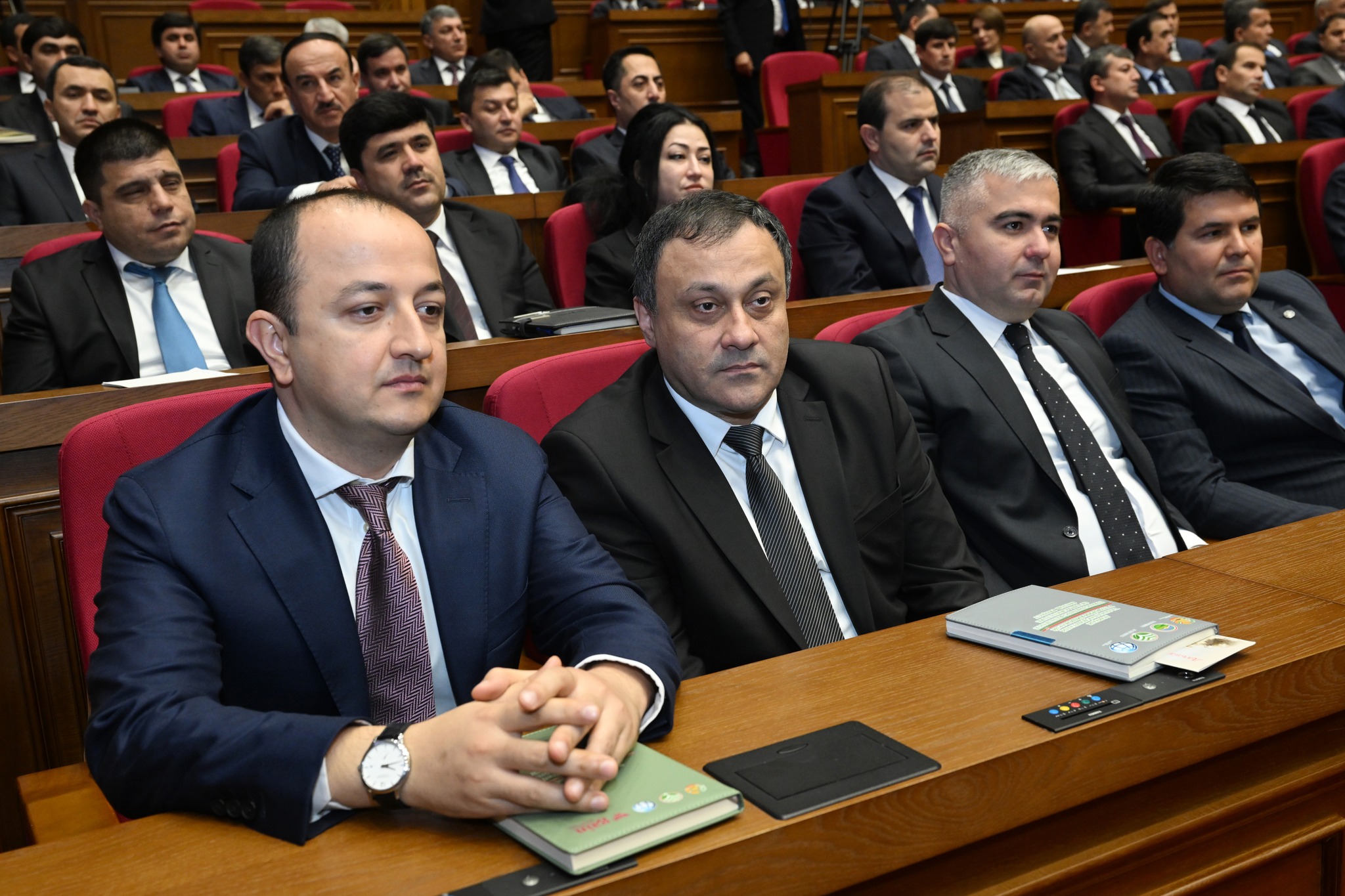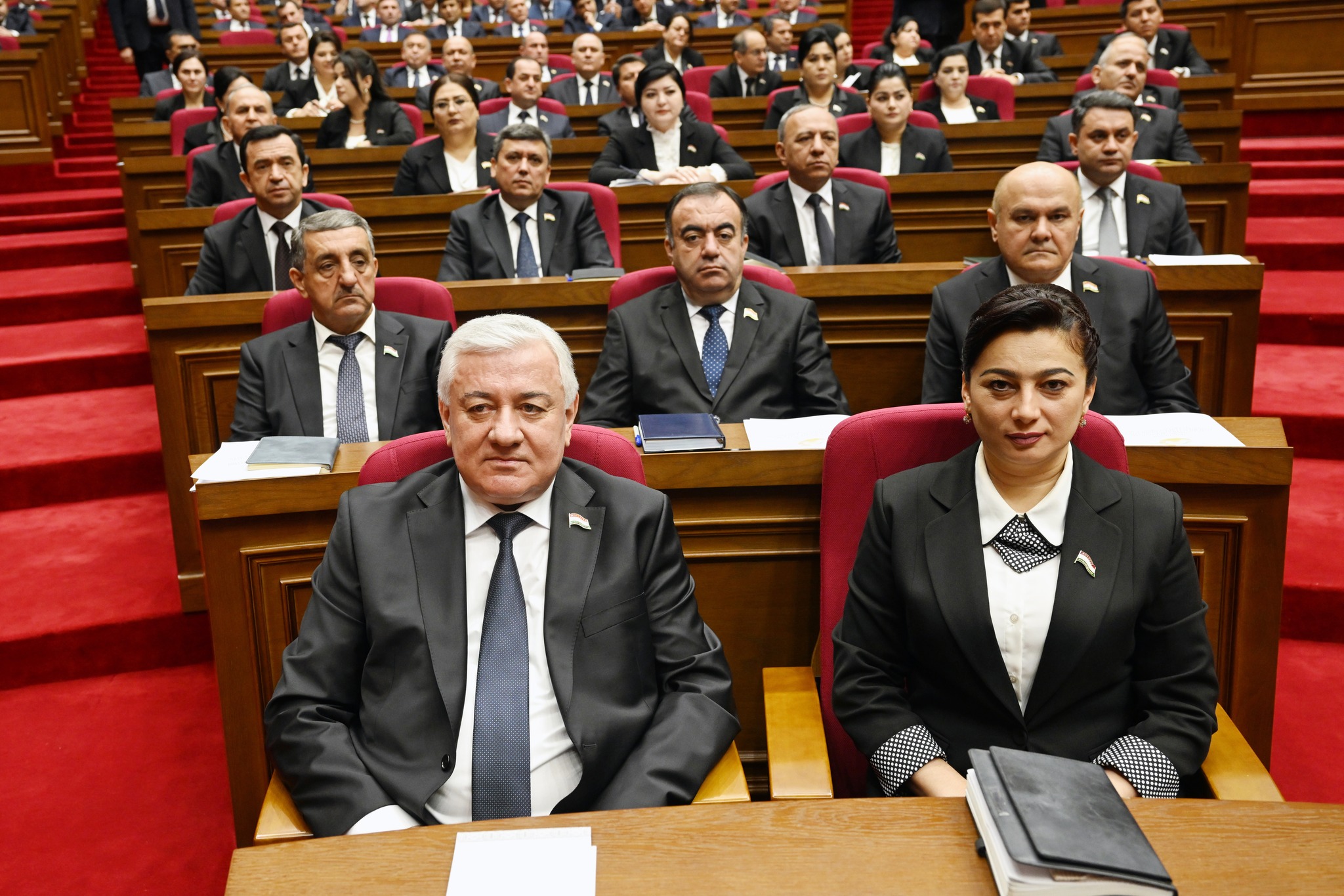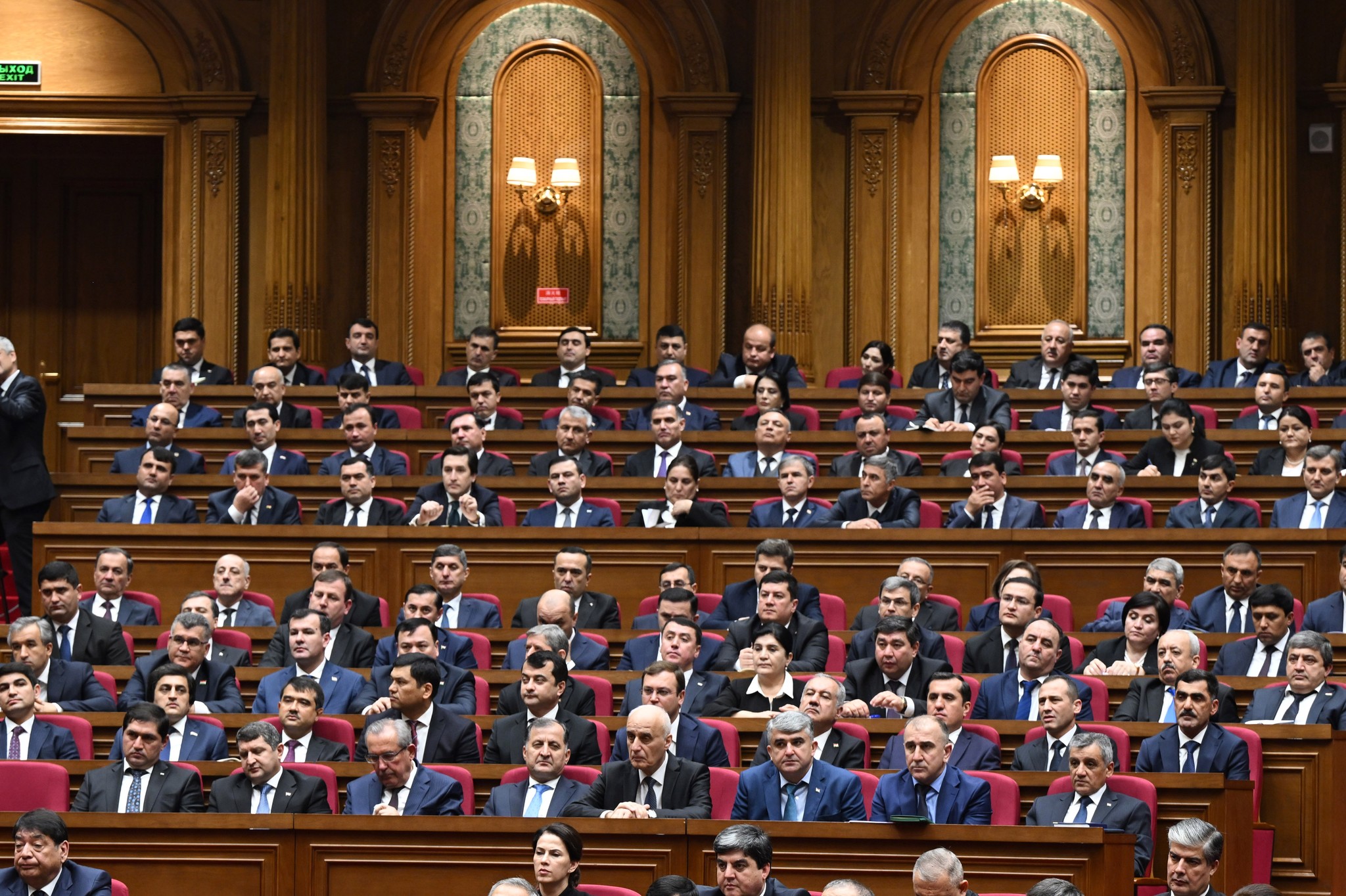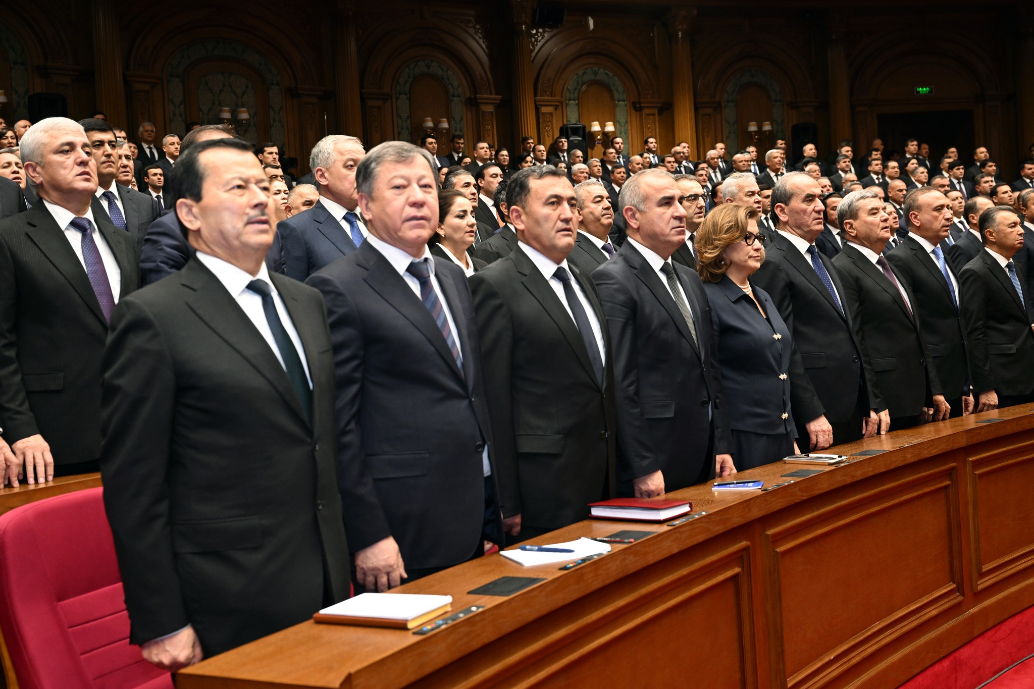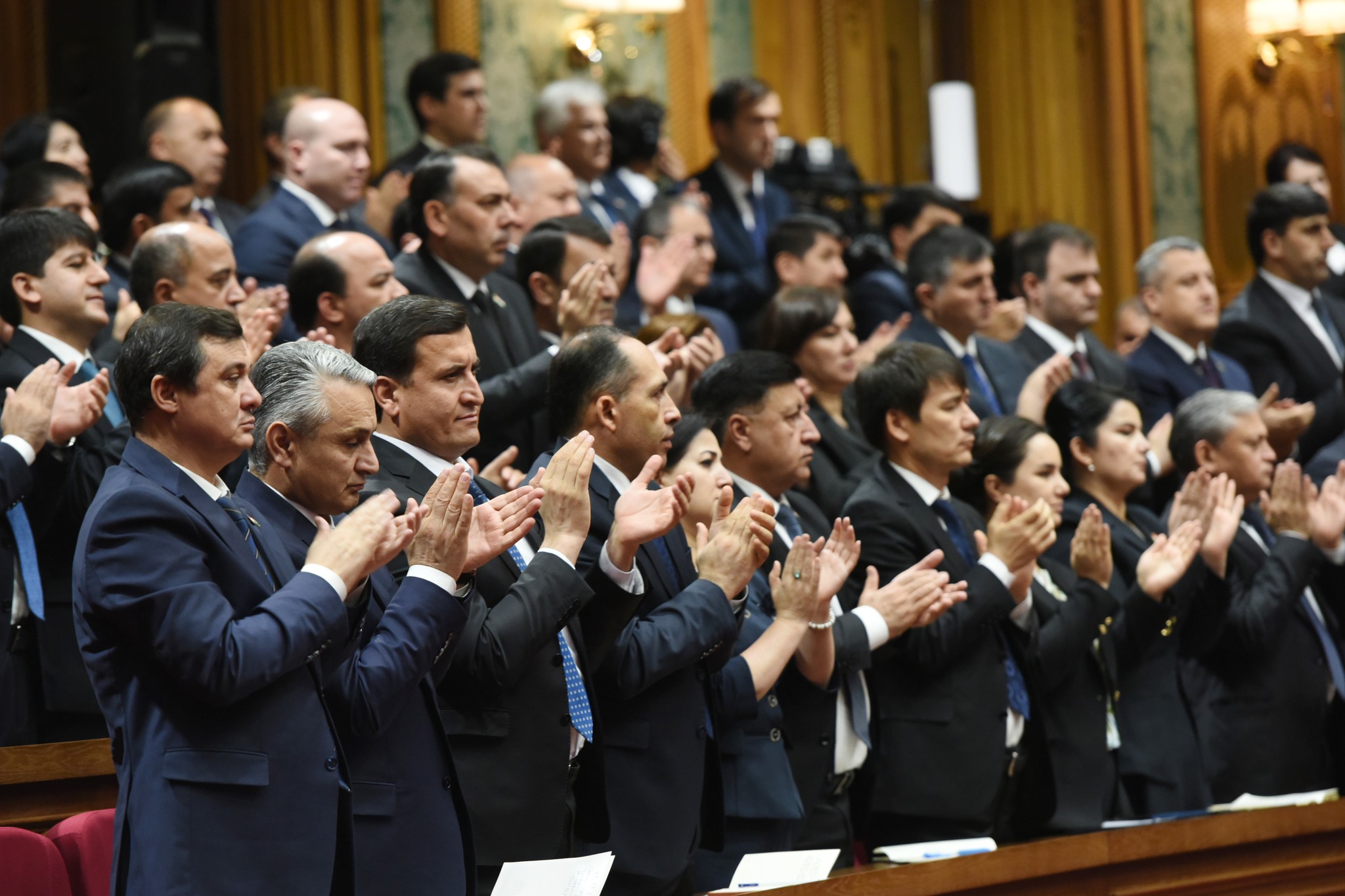 Дар толор раёсати ҳарду маҷлиси Парламент, аъзои Маҷлиси миллӣ ва вакилони Маҷлиси намояндагони Маҷлиси Олии Ҷумҳурии Тоҷикистон, Сарвазир ва аъзои Ҳукумати кишвар, Роҳбари Дастгоҳи иҷроияи Президенти Ҷумҳурии Тоҷикистон, роҳбарияти вазорату кумитаҳои давлатӣ, идораҳои назди Президент ва Ҳукумат, мақомоти марказии судӣ ва дигар ниҳодҳои ҳифзи ҳуқуқу тартибот, Академияи миллии илмҳо, муассисаҳои олии таълимӣ, роҳбарони марказҳои татбиқи лоиҳаҳои сармоягузорӣ, як гуруҳ вакилони Иҷлосияи XVI Шӯрои Олии Ҷумҳурии Тоҷикистон, аъзои Шӯрои ҷамъиятӣ, Ҳаракати Ваҳдати миллӣ ва эҳёи Тоҷикистон, вакилони як қатор иттиҳодияҳои сиёсӣ, ҷамъиятӣ ва эҷодӣ, роҳбарияти корхонаю муассисаҳои ҷумҳуриявӣ, бонкҳо, тоҷирону соҳибкорони фаъол ва ҷавонони ташаббускор, намояндагони ҳайати дипломатӣ ва воситаҳои ахбори умум ҳузур доранд.